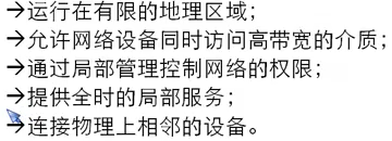 - 特点:距离短、延迟小、数据速率高、传输可靠