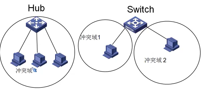 - 交换机的每个接口连接一个冲突域